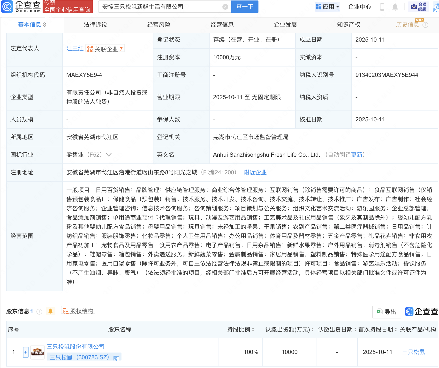 配资最新行情该公司由三只松鼠(300783)全资持股 配资最新行情 来源:中国配资网官网首页 网站:股票配资知识联系方式,炒股配资最新,股票配资门户有哪些 日期:2025-10-16 06:17:00 查看:55